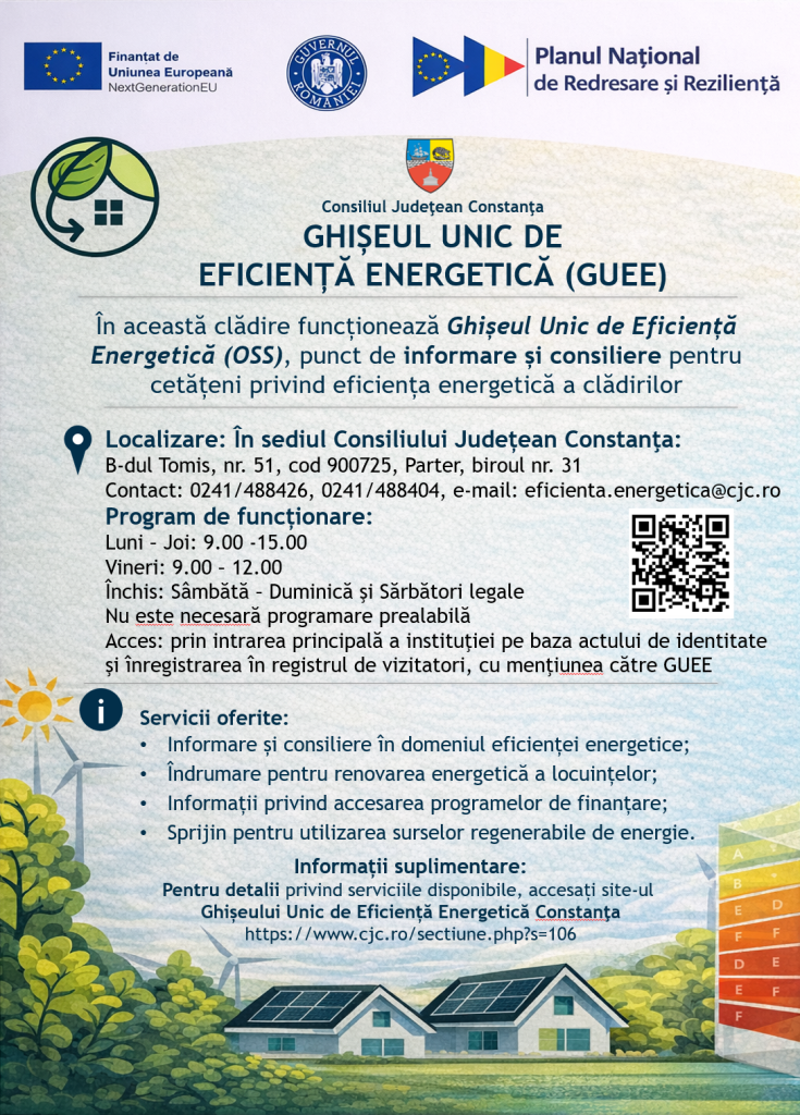 GHIȘEUL UNIC DE EFICIENȚĂ ENERGETICĂ (GUEE) Postat pe 25/03/2026 de primaria Consiliul Judeţean Constanţa